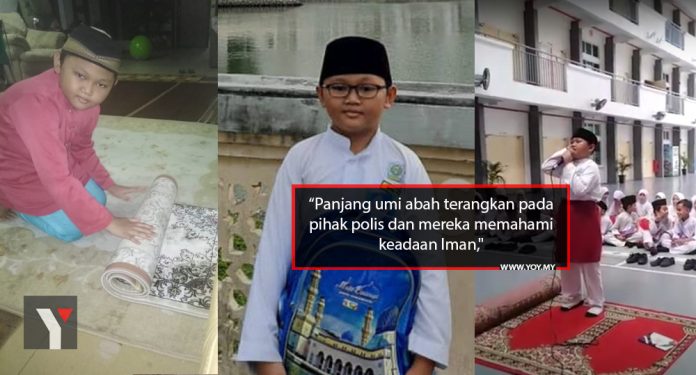 “Anak umi azan manual saja. Panjang umi abah terangkan pada pihak polis dan mereka memahami keadaan Iman,” tulisnya yang membahasakan dirinya sebagai umi dalam perkongsian tersebut.